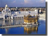 AKAL TAKHAT - It rightly faces the Golden Temple. Built by the Sixth Master Guru Hargobind (1606-44) in 1609, it has been the nerve centre of the Sikhism ever since.