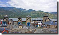 The Laxmi Narayan Temple complex also has some fine sculptures of residing deities, which include figures of Lord Vishnu (of the Hindu trilogy), Goddess Laxmi (Goddess of wealth), Narasimha (Lion form of Lord Vishnu) and Lord Krishna. The wooden Chhattries, the shell roof, atop the temple were in response to the local climatic conditions as a protection against snowfall.
