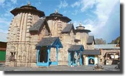 The Laxmi Narayan Temple in Chamba is constructed in the Shikhara style. There is Bimana (Shikhara), garbhgriha and also a mandapa like structure. The wooden chattris and the shell roofs reflect the climactic condition of the place where snowfall is quiet expected.