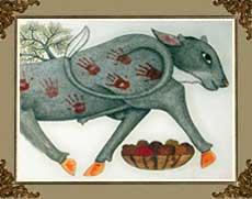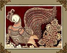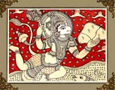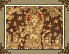 Kalamkari Painting widly imbibes itself with Hindu mythlogical themes from epics like Ramayana, Mahabharata, Srimad Bhagwat and Puranas. The unique thing about these painting is that no two panels are similar. Vegetable and mineral pigments are being used here to create these paintings. The specialty is that the finished products are mellow. Bright colours are used but the finish is not gaudy.