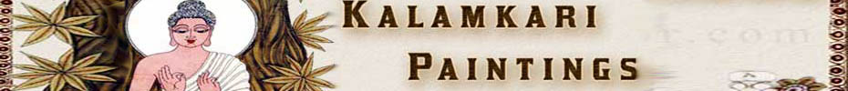 The technique of Kalamkari paintings involves resist dyeing and hand printing. There is lot of treatment being done before and after the painting on the fabric. Kalamkari literally means, Kalam - pen & kari - work, i.e., art work done using a pen. The artists use a bamboo or date palm stick pointed at one end with a bundle of fine hair attached to this pointed end to serve as the brush or pen.