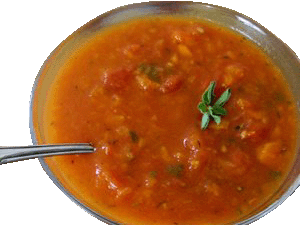 - Scald and skin the tomatoes by placing them in a bowl, pouring boiling water over them .