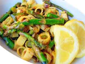 - Add the asparagus stems and sauté for 2-3 minutes; then cook covered, stirring occasionally, until fork tender.