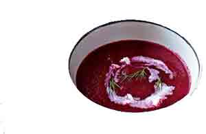 - Garnish with a swirl of yogurt and the chopped basil and serve immediately.