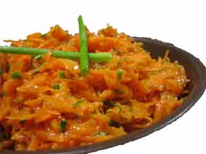 - Pour the hot ghee-spice dressing on the salad. Mix well.