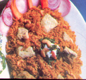 Cook till dry and garnish with tomato slices, onion rings and serve hot.