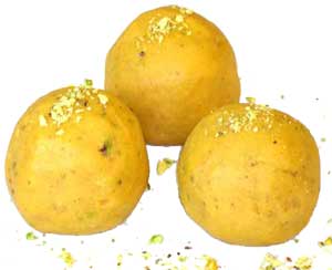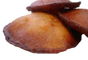 - Heat ghee in frying pan, drop small pellets of dough gently into ghee and deep fry till it turns reddish brown in colour.