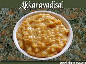 This is a traditional Iyengar sweet prepared in temples as prasaadam. It is called Akkaravadisal or Akkaravadesil. Akkaravadisal is more gooey (kinda semi solid) and is cooked in milk.