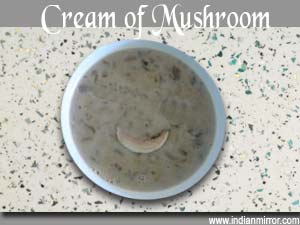 Delicious creamy mushroom soup accompanied with buttered garlic bread, a heavenly treat for a chilly winter's day / night.Adding cream makes this a filling dish.