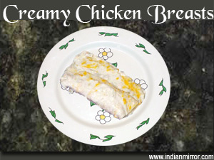 - Stir in green onions and asparagus. Place chicken breasts on top with thicker parts toward outside edge of dish.