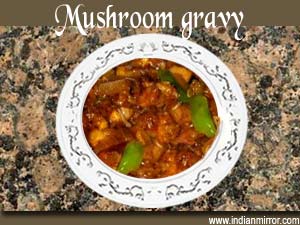 - Add chopped mushrooms and microwave covered for 3 – 4 mins. Add 1/2 cup of water if it becomes very dry. Stir in between garnish with green coriander and ginger strips.