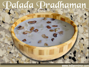 Palada pradhaman is a sweet dish made of flakes of cooked rice, milk, and sugar. A Sadhya means "big feast" in Malayalam is not completed without a dessert.