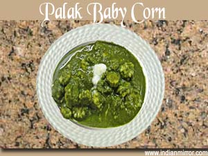 This is a low cal version of palak paneer in which baby corn is used instead. Baby corn apart form being low in calories and fat as compared to other vegetables also imparts a crispy texture.