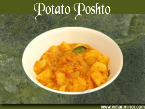 Potatoes cooked in Poppy seed (also called Poshtodana in Bengal) paste with chillies to give this traditional Bengali speciality.