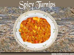 - Add the chopped turnips and salt. Mix well. Add the water and stir well. Microwave covered on 70% power for about 14 minutes (stirring at regular intervals) or till the turnips are tender and the moisture has evaporated.