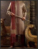 Traditional Sherwanis are symbols of Royal splendor, worn by Maharajas daily and Nobles and Courtiers of the King wore them frequently, though not daily. Sherwani is a long coat for men, and an outfit best suited for pajamas or dhotis worn beneath it. There is tremendous scope for the artists in embellishing the Sherwani, with innumerable decorations, embroidery by yarn or stones, sequin dress work and a lot more. The accessories that go with Sherwani are Cravats (Long towels), scarves made of silk or linen material and a Turban on the head, which is also an artifact of its own, by the designs.