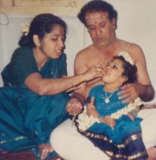 This is the naming ceremony. It is done on the eleventh, thirteenth or twenty-ninth day after the birth of a child. For Namkaran the name is selected from the 1008 Jinasahasranam for the boys and names of the girls are selected from famous women of the Puranas. The priest, chanting mantras declares the name and thenthe child is blessed.