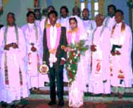 This is usually held at the brides' residence. It is more or less a family affair and only the close relatives attend the function.The priest starts the function with a prayer. Then the girl and the boy exchange garlands, the Bible and a ring as a mark of their engagement. The priest delivers a small sermon and a feast is given for the invitees. The girl and the boy are given time to talk and understand each other. On this day the date of marriage and other details are discussed between the groom's and the bride's side.