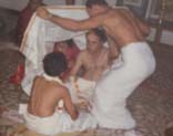 This is the presenting of the girl to the groom by the bride's parents. The father proclaims to the congregation that he has given his girl to the groom. The priest pours water on the hands of the groom and the bride, chanting mantras. Then the priest begins a havan.