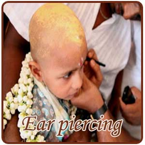 Karnavedha is the practice of the piercing of the ears and it is one of the important Hindu Samskaras or spiritual ceremony performed for a child. Karnavedha generally takes place after three to five years after the children are born. But sometimes the piercing of the ears also takes even before the child attains one year of birth or even at a much later stage.Karnavedha is a Vedic rite of passage. Ear piercing is not specific to a particular gender but it quite common among both the male and females in India. Usually for a girl child the first ear pierced is the left ear whereas for a boy child the first ear pierced is the right. The people believe that by means of doing this it helps in opening of the inner ears of the child so as to receive the sacred sounds. The ear piercing ritual has more of spiritual fascination and emblematic significance. The people believe that by hearing these sacred sounds or the mantras which helps in flushing our sin and caring and protecting our spirit.Ear Piercing Ceremony is done on auspicious day