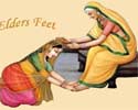 There is no religious significance behind the touching of the elders feet by the youngsters but it signifies respect. |