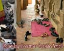 It is a custom in Hinduism to remove the footwear outside the sacred temple premises. |
