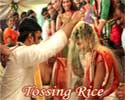 In Indian weddings people follow various customs and one such ritual is the tossing of rice on the married couple. |