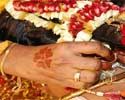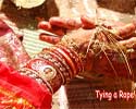 Usually in Hindu weddings a rope or a string kind of grass is tied in the hand of the bride and the groom. |
