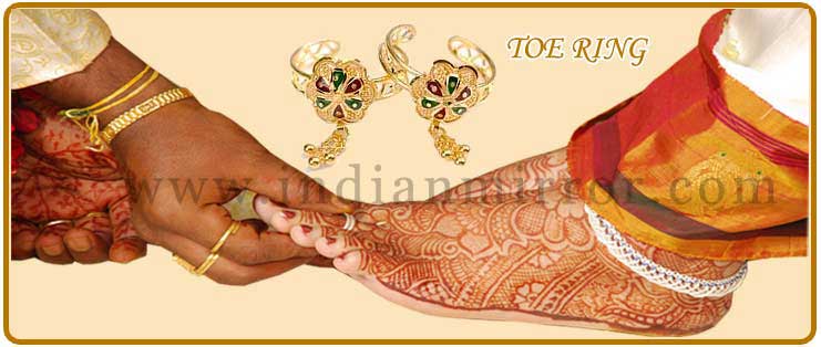 Toe rings apart from silver and gold it is also made of various other metals and non metals. Some say that the basic reason behind the wearing of toe ring in the second toe is that when compared or proportionately it is the longest toe and thus the easiest toe to put a ring on and stay without being connected to anything else. Though this ornament is of great significance for the Hindus in India, it is really not viewed in the same angle by most of the Western countries, for there it is relatively new fashion accessory, and typically have no symbolic meaning. They are usually worn with barefoot sandals, anklets, bare feet or flip flops. In ancient days the toe rings were quite ornate but of late the metti is coming out with more contemporary designs and are now being developed to cater to the modern bride.