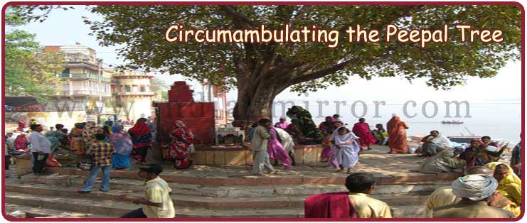 Scientifically known as Ficus religious, the peepal tree has its mention even in the ancient Indus Valley civilization at Mohenjadaro. There are evidences which show that the peepal tree was worshipped then. In Sanskrit the peepal tree is also known as "Ashvattha".According to Hinduism when a woman is said to circumbulate a peepal tree she is sure to be blessed with progeny or to gain a desired wish. This more like a ritual is followed by the Hindu people in the Indian subcontinent. We can usually see the peepal tree in almost all the Shani and Hanuman temples. The peepal tree is especially worshipped on all Saturdays for it is believed that because Goddess Lakshmi sits under the tree on this day.