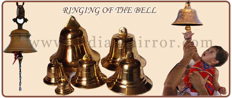 -There are no temples which can be seen without a bell and usually a large bell is hung at the entrance of the temple so that it is a custom to ring the bell and then enter. The reason behind ringing the bell and then entering is that as the sound is produced by the bell our brain automatically is emptied of all thoughts and we enter into a trans- state of mind where the bell works as an anti-dote. Giving a sudden shock is the only way to wake up our brain and prepare ourselves or taste of awareness and this is done by the ringing of the bell. There are also other reasons behind the ringing of the bell, in ancient days temples were mostly situated near hills and forest and there used to be all possibilities of wild animals or other living creatures like insects and birds which might have its shelter there. So bell sound never let any wild animals or other creatures to be in for a prolonged time.