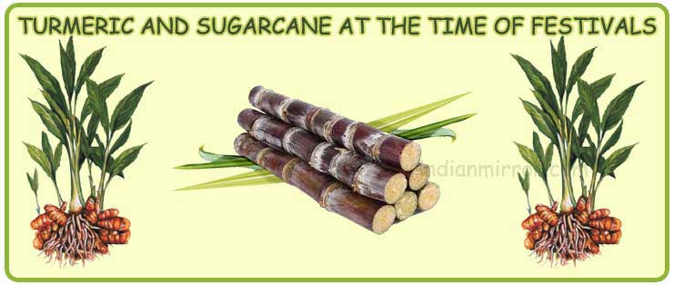 Turmeric and Sugar Cane are mainly used at the celebration of Pongal Festivals