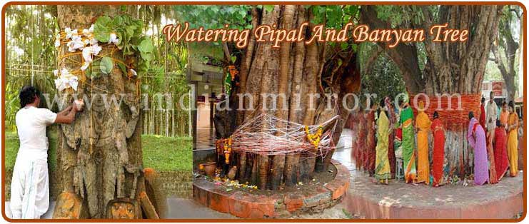 The Pipal tree and the Banyan Tree represent knowledge and sacredness in the Indian Folklore. It is under these trees many renowned people have attained enlightenment. Usually the women folk follow the custom of watering the Banyan tree and circumbulate the banyan tree praying for the health of their husbands and those who are in want of a progeny.Hindus believe that Goddess Lakshmi lives in a pipal tree and the banyan tree houses Lord Vishnu. Also after the women water these trees they light a small diya and place it at under the trees.