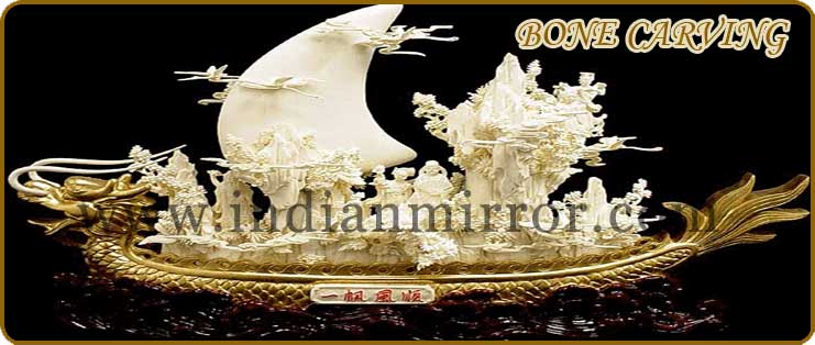 Bone carving is most commonly considered as a legal substitute for ivory carving and is being practiced by a number of world cultures. This prehistoric art of bone carving came up with significant figures taken from mythology. Lot of chests were made by the bone carving and also sometimes artists and craftsmen who deal with metal works try their patterns on bones. Bone carving can be experienced with a different and special feel unlike any other art form. They are featured with a milky white appearance and soft flowing lines. The feel of the bone carved ornaments or products gives a very soft and warm feel when you touch and gives a polished glass appearance which goes very well with one's body and especially when worn against the skin as a pendant. Hence Indian Bone carved products have earned a specil niche in the international crafts market.