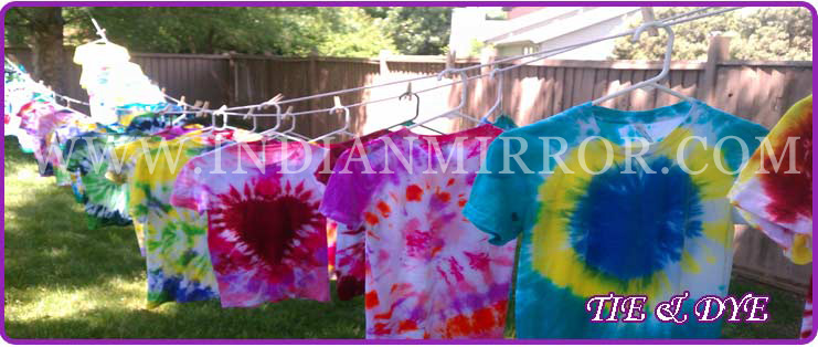 -Tie and Dye is the process by which a fabric is dyed using a particular resist dyeing method. In this method the fabric or the material which has to be dyed is tied in a specific pattern and then binding it in place with rubber bands, clamps, or strings. Then the dye is applied to the fabric which binds to that portion of the material which is not held by string or rubber band because the banded area will not let that particular portion to be dyed thereby giving the fabric a specific pattern. It was quite popular in the 1960's subculture and now both the mainstream and sub- cultured people have a liking for the tie and dye fabrics. The tie and dye pattern is believed to have been introduced by the freewheeling Hippies who were always noted for their peace and music loving spirit in them.