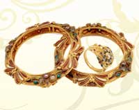 • Retro jewellery: Retro is a latest description for the era in the forties when huge scale, formalized ordered forms, drapes, bows or ribbons were all the indignation. Pink gold jewellery, fixed with colored precious stones, at times in floral forms was very common.