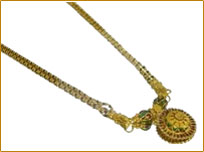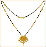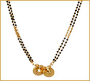 Mangalsutra serves as the token of dignity and love to the bride by her groom. While marriage the groom ties the Mangalsutra around the neck of the bride and the priest recites Vedic hymns and prays. This tradition of tieing the Mangalsutra signifies the union of the bride and the groom, amidst the presence of deities, who have been believed to be attending the marriage. In some parts of the country, the groom ties the first knot and his sisters tie the rest of the knot. The Mangalsutra is a sacred thread which is made of two strings of small black beads with a locket or pendant. Sometime it is also made up of small beads of gold and black beads, with gold and diamond pendant as per the status of the people engaged in the marriage.