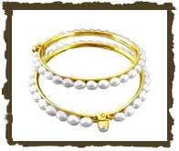 After a pearl is made, it is separated as per the shape.The drilling to the pearl is either done horizontally or vertically which is done by highly skilled artisans. Then later the pearls are graded according to the sheen, lustre, glaze, shape, size, and uniformity. Different kinds of ornaments are moulded from pearls like bracelets, Kundan sets and enamelled sets, Satlads which is seven strand pearl, set with precious stones, lacchas, chand bali which is a moon shaped ear-ring, chokers, rassi which is a chain set in the form of rope, chatai -it is a mat type chain, ear rings and rings, hath phool which are made for the fingers and the wrist, vaddenam which is tied to the waist belt and Tanmani.