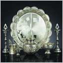 In the state of Orissa, one can come across a unique way of using silver in jewelry that is known as "Tarkashi". In this form of jewelry, silver is spun into very thin wires, which is then used to make small containers, vases, lamps, boxes and of course jewelry. The designs carved on this kind of jewelry are very complicated and detailing is very minute thus making it unique in its own way. In big metro cities of India like Mumbai one will find silver being used in very innovative styles like feathered plumes, secret locking pendants, ink wells and even dinner sets.