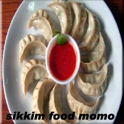 The men belonging to the Lepcha community wear a white pajama, stretching to the calves and this is called as Thokro-Dum. The men wear a shirt and a cap commonly known as Yenthatse and Shambo respectively. The costume of Bhutia men is similar to that of the Lepcha which is known as Bakhu which is like a long robe and tied to the neck on one side and with a silk or a cotton belt at the waist. On top of all this they prefer a waist coat, Jya Jya. Nepalese constitute a portion of the population of the people of Sikkim and their origin is very clearly depicted in their attires. The Nepalese men dress themselves in Shurval, a Churidar Pajama, topped off by a shirt, known as Daura. The women of Lepcha community drape themselves with a smooth and cozy dress which is quite long and goes up to the ankle. The blouse worn by them is very loose and is known as Tago. Apart from this they wear a belt and a cap and adorn themselves with earrings, called Namchok, Lyak a necklace, Gyar and a bracelet. The costume of the Bhutia women is more or less similar to that of the Lepcha's. The married women of this community apart from their regular costume wear a stripy apron known as Pangden.They are quite crazy about gold ornaments. The women belonging to the Nepali community adorn themselves with vibrant colours especially the saris. The blouse is loose and is fastened from four sides and hence is called Chaubandi Cholo.The upper portion of the body is daintily enveloped with a piece of cloth with wonderful prints. It is called Hembari. CUISINE