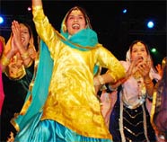 The Gidda is danced by women and young girls on family and festive occasions. The girls and women form a circle, with one of their number in the center. Gidda is womens exuberant dance forms. In Gidda the dancers enact verses called bolis usually representing folk poetry at its best. The subject matter of the bolis range widly from indeed everything in daily life like arguments with the sister-in-law to political affairs figure in these lively songs. Along with the drums, the rhythm of this dance is set by the distinctive hand-claps of the dancers.Learning the Gidda