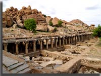 Vijayanagara rulers celebrated the Dussehra festival with much devotion when the king sat on his bejeweled throne in the center of Mahanavami Dibba, a decorated platform, and watched a colourful procession pass by. The place is worth a visit as the sides of the platform still retain the beautiful sculptures depicting many soldiers, dancers and an array on animals. Water tanks and channels abound in Hampi.