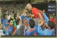 Playing careerKirsten made his Test first appearance in opposition to Australia in Melbourne in 1993. He gave up work from worldwide cricket in 2004 after crafting a contest-winning 76 in his ultimate innings, in opposition to New Zealand. In opposition to the same country he had made narration by becoming the first ever Protea to have fun in 100 Test matches. Career as playerOver the years, he achieved a status as being a brawny batsman in both Test cricket and one-day cricket. He could up the pace of an innings if he needed to, but more frequently than not he merely waited for the bad ball, greatly like Steve Waugh and Justin Langer. He was also a dependable fielder. Kirsten held the South African records for the majority runs and centuries in a Test career, prior to both were surpassed by Jacques Kallis. He was the first Test batsman to make hundreds next to each of the other 9 Test nations. He made a achieve of 275 in opposition to England as a effect of batting for over 14 and a half hours as South Africa pursued on at Kings mead, still stands as the second-longest innings (in requisites of period) in Test record. The high score was later surpassed by Graeme Smith when he made 277 against England in 2003. He still holds the record for highest innings by a South African in a One Day International; 188 not-out made against the United Arab Emirates during the 1996 World Cup, which is the sixth highest innings of all time in One-Day International cricket, and the highest score in World Cup cricket history. Coaching careerIndia (2008-2011)Subsequent to departure, Kirsten structured his own cricket academy in Cape Town. In November 2007, it emerged that Kirsten was an aspirant for the vacant job of Indian trainer. The BCCI presented him a two-year agreement for the job, and in spite of expression reservations on concerns he had about having the full shore up of India players, he established he would be taking the post on 4 December. He authoritatively started as trainer on 1 March 2008. On the other hand, he travelled to Australia with India beforehand for the duration of the test sequence. His first full succession in charge was in opposition to his home country, South Africa in MarchApril 2008 which was drawn 1-1. Also, he trained India to the finals of the Kit ply Cup and 2008 Asia Cup. For the duration of his term as Coach of India, Indian cricket side won an abode chain in opposition to Australia beating them 2-0. ![]() Apart from finalizing the Border-Gavaskar trophy, he also coached India to its first bilateral sequence win in Sri Lanka in opposition to Sri Lanka and India's first One-Day International sequence victory in opposition to New Zealand in New Zealand after 40 years. India also won the Compaq Cup, overwhelming Sri Lanka in the competitions on 14 September 2009 by 46 runs. An exceedingly talented batsman himself, he has brought in a substantial total of enhancement in the batting acts, which is mainly connected with his skill to infuse enhanced confidence amid younger players. Gary Kirsten has been honored by all players for humanizing/attracting their playing systems, inspiring them and conversing tactics that can be positioned on the meadow. The outcome could be obviously seen in months. He is well thought-out the key strength behind the clearly perceptible performance enhancement in all players. In 2010, proceeding to the start of India's tour of South Africa, Indian skipper M.S. Dhoni described him as "The best thing to happen to Indian cricket." World Cup 2011After the visit of South Africa, which India drew 1-1 in the test sequence lost 3-2 in ODIs, Kirsten proclaimed he would not renovate his contract with BCCI because of family commitments, Kirsten regularly stated that he hunted to splurge time with his two growing sons, Joshua and James and wife and three-years away from dwelling was long adequate, with Kirsten's bond ending just after the World Cup finishes it is alleged that the World Cup will be his final assignment as coach of the Indian national Cricket side. Instantaneously after the proclamation Kirsten was allied with joining South Africa as their trainer as the South Africa instructor Corrie van Zyl also broadcasted his agreement would end after the World Cup as well. Kirsten ruined his possession as coach after India won the 2011 Cricket World Cup overcoming Sri Lanka by 6 wickets and 10 balls to standby on 2 April 2011 at Wankhede Stadium in Mumbai, India. All through the celebration, he was carried in the region of the ground by Suresh Raina, Yusuf Pathan and Virat Kohli to show their esteem. ![]() His term as trainer to the Indian area has come to an end with the Indian team's triumph amidst an assortment of media news of very worthwhile offers from a choice of residence from the cricketing globe. But he has cleared the appearance by adopting a meek loom on his advance availability as coach to the Indian team by saying that he has no offer and he wanted to say adieu to India for the reasons that he wants to fritter time with his folks.
