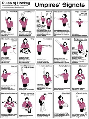 The Players![]() Offensively, the defensemen in the game of hockey get the puck to their forwards and trail the play into the aggressive zone, putting themselves just inside their rival's blue line at the points. Center are the players in the quarterback on the field, the center player leads the attack by carrying forward the puck on offense. He then exchanges passes with his wing players to direct the play near the opposing goal. On defense, he attempts to interrupt a play before it comes on his team's side of the field. The wing players are the players who team with the center on the attack to set up blasts on goal. Defensively, they try to halt the plays by their equals and upset shot efforts taken by the opposition team. The Officials![]() Just like players the officials of the game are also of four categories. They are Referee, Linesmen, Goal judges and Official Scorer. Referee is the one who oversees the game, calls for the penalties, decides if goals are counted and handles the face-offs at center field at the start of each period. Two Linesmen are used in the game. They call for the offside, offside pass, glazing and handle all the face-offs occurring at elsewhere other than the center field. They do not call for the penalties, but can actually mention to the referee that a penalty might have to be called. ScoringThere are three diverse ways to notch a goal in field hockey. They are Field goal, Penalty stroke and Penalty corner.Field GoalA goal can only be counted if the shot of the puck is taken inside the shooting circle, a semicircular zone in the anterior of the opponent's goal. The shooting circle is also called as the dee or a D for the defensive side. The pock must be moved by a player on whichever team inside the circle for it to be counted as a goal.Penalty StrokeA penalty stroke is a distinct shot taken on a goal by an offensive player selected by their team. The goalkeeper is the one and only opposite player who can actually defend this shot. A stroke may be given for a variety of reasons. The maximum used reason for a penalty stroke to be obtained is when a defender commits a foul that openly stops a goal from being scored. The penalty shot is taken from a position mentioned to as either the stroke mark or the p-flick.It is placed seven yards or 6.4 meters unswervingly in front of the goal. Game play is still during the penalty stroke and all the players must position outside the circle, 25 yards or 23 meters away. The player must thrust, flick or scoop the ball and is allowed to raise the ball to any elevation. When the stick touches the ball, it should make no different hitting noise else the referee can deny the penalty stroke.Penalty CornerA penalty corner is given when the defensive team breaks a few guidelines within the D, or when a defender performs a deliberate offense external to the circle but within the 25 yard or 23 meters of area. The Game Play is stopped for the penalty corner to permit time for both the sides to set up its particular attack and defense places. Defense is permitted for five defenders, containing the goalie on the end line. One attacker positions on the end line 11 yards or 10 meters away from the goal and thrusts the puck out to the attackers on uppermost portion of the shooting circle who are waiting to yield a shot on goal.First Shot is Actually a Very Hard Hit on the GoalThe remaining players of the defensive team must stop behind the center line till the ball is pressed out by the offensive player. In order for a goal to be counted during a penalty corner shot, the ball needs to travel outer to the shooting circle before an offender can actually take the shot. The received player will then thrust the ball again into the circle for a shot to be taken. The shot has to be taken within the marked circle for the goal to be counted.The first shot is actually a very hard hit on the goal. If the ball is elevated in the air overhead the backboard, the goal will not be counted. The only exclusion to this rule is if the initial shot is a scoop or a flick, shots that are raised in the air with an extended scooping or pushing action. On the international level, the drag flick is known to be the most popular type of elevated shot on short corners. Teams usually have a usual play for short corners. A short corner is the greatest opportunity to score a goal easily in the field hockey, because the offensive team attacks with twofold as many players as the players of the defensive team. Hockey Rules-Umpire Signals