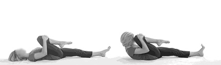 - Hold the exhaled breath for a few seconds then slowly inhale and return the back, shoulders and head to the floor. Remain holding the knee.