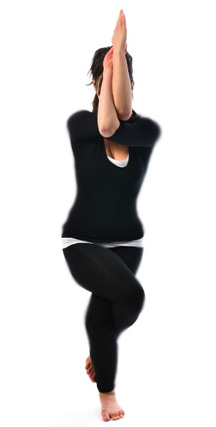 The Garuda-asana will strengthen the legs, knees and ankles. It stretches and tones muscles of the leg and can help relieve cramps of the legs.