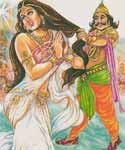 Kotikasya went back to Saindhava Jayadratha and told him that the lady he wanted to know so eagerly was none other than Panchali, the wife of the Pandavas. Then he went into the hermitage and accosted her asking, "Noble lady , daughter of Draupada why do you waste your loveliness and youth here in this forest in the company of shameless beggars? I am a king, you are a gem of a lady; I deserve you; come with me, leave the wretched Pandavas to their fate in the forest. I will treat you as the queen of my heart. Come please, get into my chariot."