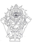 The King Hiranya was very badly frustrated and confused not knowing how to get his son follow his order. Finally he decided to trample his son by the elephants and ordered his men to make arrangements for it the very evening. The people of Hirankasipu also gathered in the place and were very astonished and they all cursed the king in their hearts saying he is the demon King, who has gone to the extent of killing his own son by making the elephant trample. The King came out to watch the destruction of his own son. The elephants were brought to the court and Prahlad before kneeling worshipped his God Narayana chanting the mantra, "Om Namoh Narayana!" Prahlad then kneeled with his eyes closed and his hands folded in front of him and then the king ordered to go ahead. But suddenly an astonishing incident took place where Prahlad was blessed by the uplifted trunks of the elephants as they passed him one by one. Hiranya thanked his father for only because of all this he was able to know the power of Lord Narayana. With humility he asked his father to give up his vanity and join him in worshipping Lord for Narayana will surely forgive the cruel demon king. But Hiranya bursted out in anger and dragged Prahalada by the hand and shouted, "Narayana, Narayana, Narayana. All the time you take his name. Tell me where he is?" He whirled on his feet, "Is he in this pillar?" Hiranya took his sword and struck the pillar and to the surprise of the people and Hiranyakasipu, Narayana came out of the pillar in the form of Narasimha with the body of Nara or man and the face of a Simha or lion. He killed Hiranykasipu thus granting the earlier wish of the demon King by being killed neither in the day nor night as it was twilight. Finally the Lord Narasimha asked Prahlada to seek whatever he wants and Prahalad with humbleness requested to forgive his father. Narasimha smiled and nodded his head. When Prahlad was crowned King, he was known to be the most kind and just among the rulers of his time.