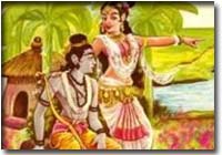 Rama apprehended danger. He asked Lakshmana to take Sita into a cave nearby and protect her. Bow in hand he stood valiant. Wave after wave of the demon forces charged against Rama from all directions. But like moths perishing in a blazing flame the on- rushing hosts were being slain by the shafts cealessly darting form Rama's bow. Along with the multitude Dushana fell slain. Trisira also met with the same fate. Lastly a duel ensues between Khara and Rama. This last demon also is done to death. A miracle is noticed in Rama's action. Akampana was the solitary soldier who escaped annihilation at the hands of Rama. He speeded on to Lanka, sought the audience of the king Ravana and hesitatingly accosted, "The Janasthan at Dandaka is completely destroyed." He hesitated because it is dangerous to oneself to carry bad news to tyrants. Ravana flared up and was at the point of striking him dead. Akampana trembled and begged that he would relate the tragedy if protection to him was assured. "Who are the gods that dared to destroy my domain? I shall go and do away with them just now," shouted the demon king. "Lord, gods dread you. The aggressor is Rama, the son of Dasaratha. With his angel- like wife Sita and warrior brother Lakshmana he is encamped at Panchavathi. This Rama as single- handed killed the fourteen thousand soldiers of Janasthana. He also slew Khara, Dushana and Trisira. The cantonment is gone root and branch." "I shall trample these worms of men to death and return" roared Ravana and rose enraged.