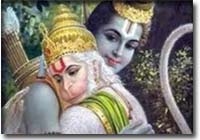 As Rama and Lakshmana came along, Anjenaya gazed at them and interrogated, "You beings of conflicting demeanour, who and what are you about?" For this question Lakshmana gave an answer asking Anjenaya what is the conflict he sees in the brothers. Anjenaya told that they looked like devas and arrayed like ascetics but with deadly weapons. He also conveyed that they look like perfected beings who neither seek nor avoid, but they seemed to be searching for something which they have lost. After hearing this Rama and Lakshmana decided to pick up friendship with him thinking that he will be beneficial to them. Lakshmana related in brief particulars about themselves up to the loss of Sita. He added that Kapandha released by the brother from a curse, became Danu, a celestial, and instructed them to seek the aid of Sugreeva for the recovery of Sita. Anjaneya also known as Hanuman and as Maruthi, was delighted over this new contact and friendship and promised that he will help them in locating Sita. He introduced himself as a minister of the fugitive monkey king Sugreeva and offered to carry the brothers to the hiding place of his king. Anjenaya told Sugreeva of the plight of the newly come brothers.